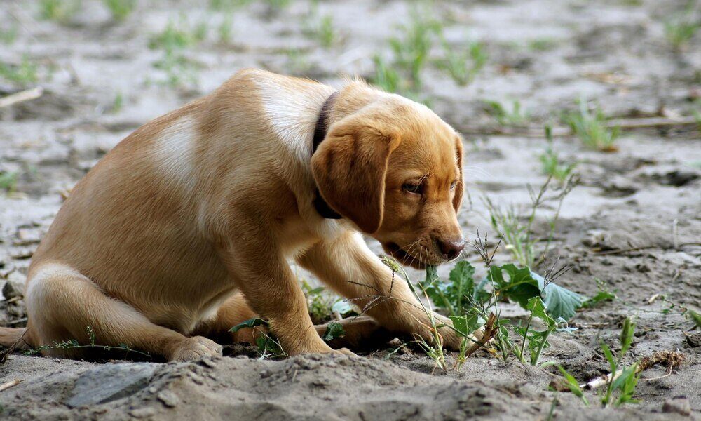 - pozwalanie na swobodne penetrowanie miejsc, gdzie leżą odchody (ogród, kojec, kuweta kota) bez nadzoru i nauki komendy „zostaw”,
