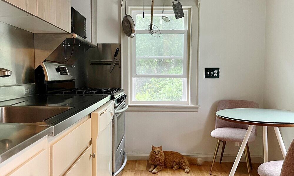 W większości małych kuchni z oknem na środku warto rozważyć ciągły blat przechodzący pod parapetem. Dzięki temu zyskuje się długą powierzchnię roboczą i miejsce do przechowywania w dolnych szafkach. Są jednak wyjątki, kiedy lepiej zostawić okno „wolne”.